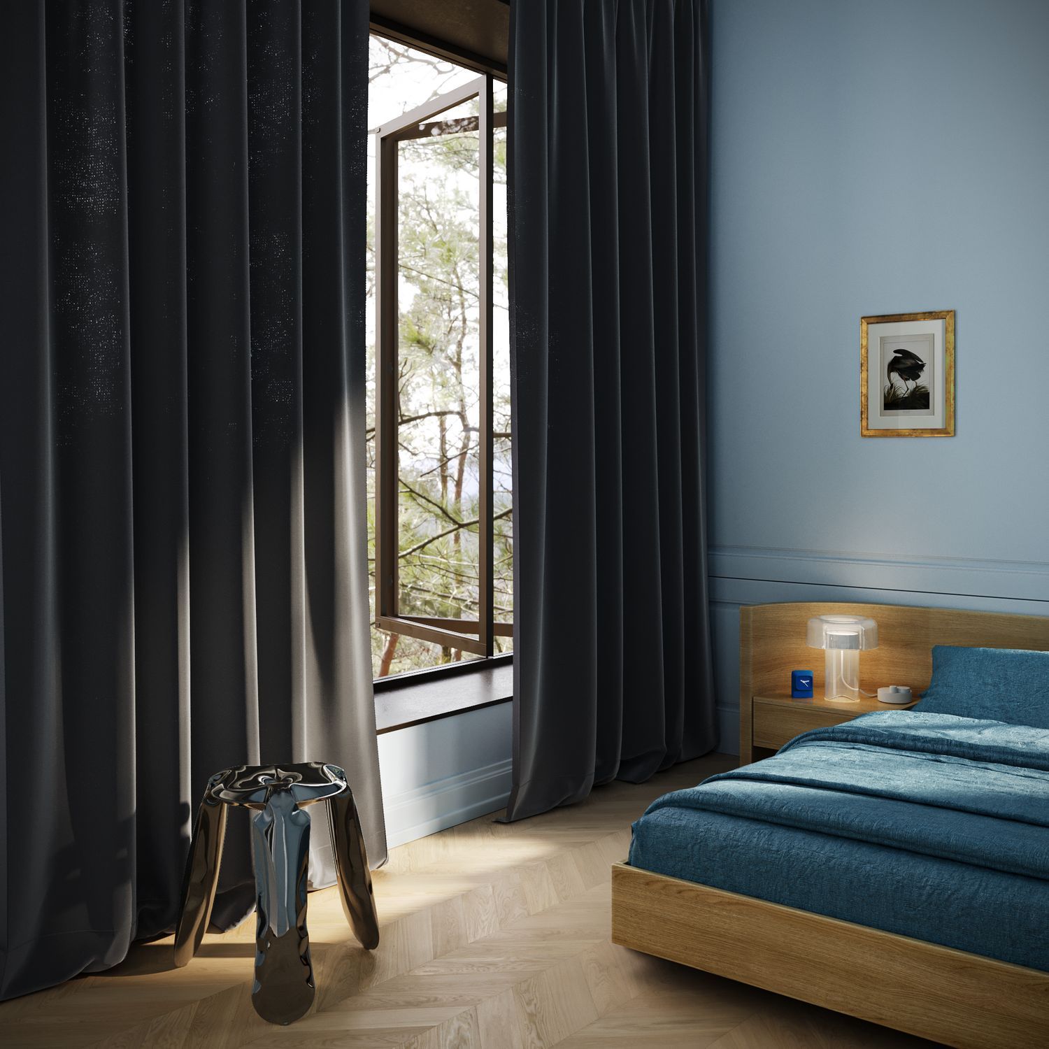 Se l’obiettivo è creare un ambiente intimo e raffinato, i toni scuri come il blu notte, il verde bosco o l’antracite sono perfetti. Questi colori si sposano bene con tessuti pesanti e drappeggiati, aggiungendo un senso di profondità e calore alla stanza. In ogni caso, il colore delle tende deve sposarsi con il resto dell’arredamento, dai mobili alla biancheria da letto, per creare un look coerente e ben equilibrato.